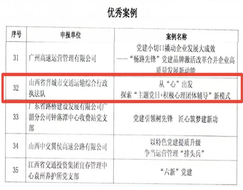 下一步,晋城市交通运输局将继续深化“从心出发”党建品牌案例的建设,汲取全国交通运输行业各兄弟单位优秀党建创新案例的经验做法,继续推进党建与业务工作的深度融合,培育特色鲜明、内涵深刻、功能显著的党建品牌,为交通强省建设和晋城市综合立体交通网“十四五”及中长期发展规划的顺利完成,注入一份“心”力。