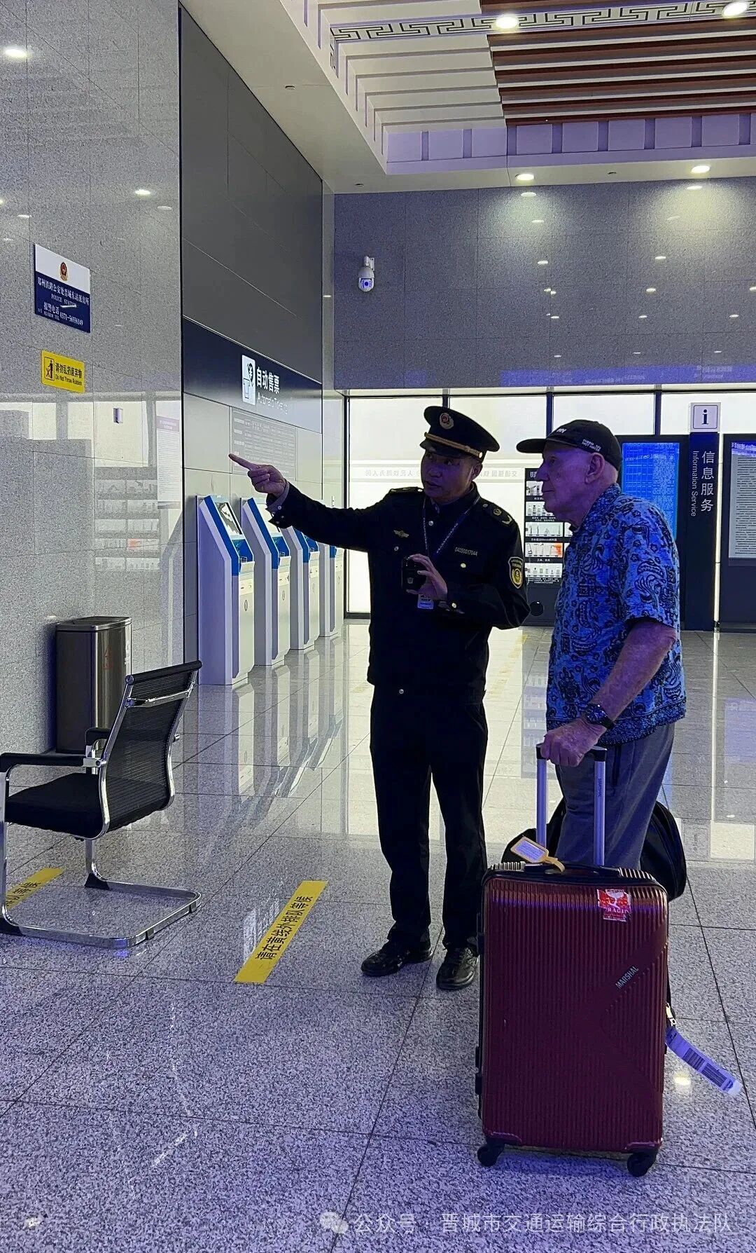 2025年11月23日上午,晋城市交通运输综合行政执法队执法人员张文奇、陈钰鑫正在晋城东站开展日常巡查。当巡至出站口时,一阵略显急促且带着异国腔调的搭话声引起了他们的注意。只见一名外国男子满脸焦急,正试图向过往的乘客询问着什么,可周围的人大多一脸茫然,语言不通使其陷入了困境。